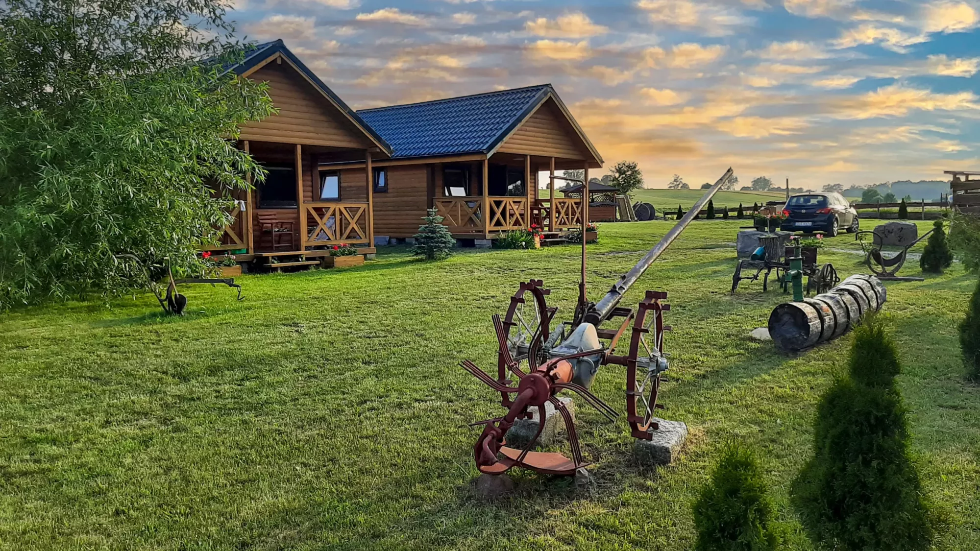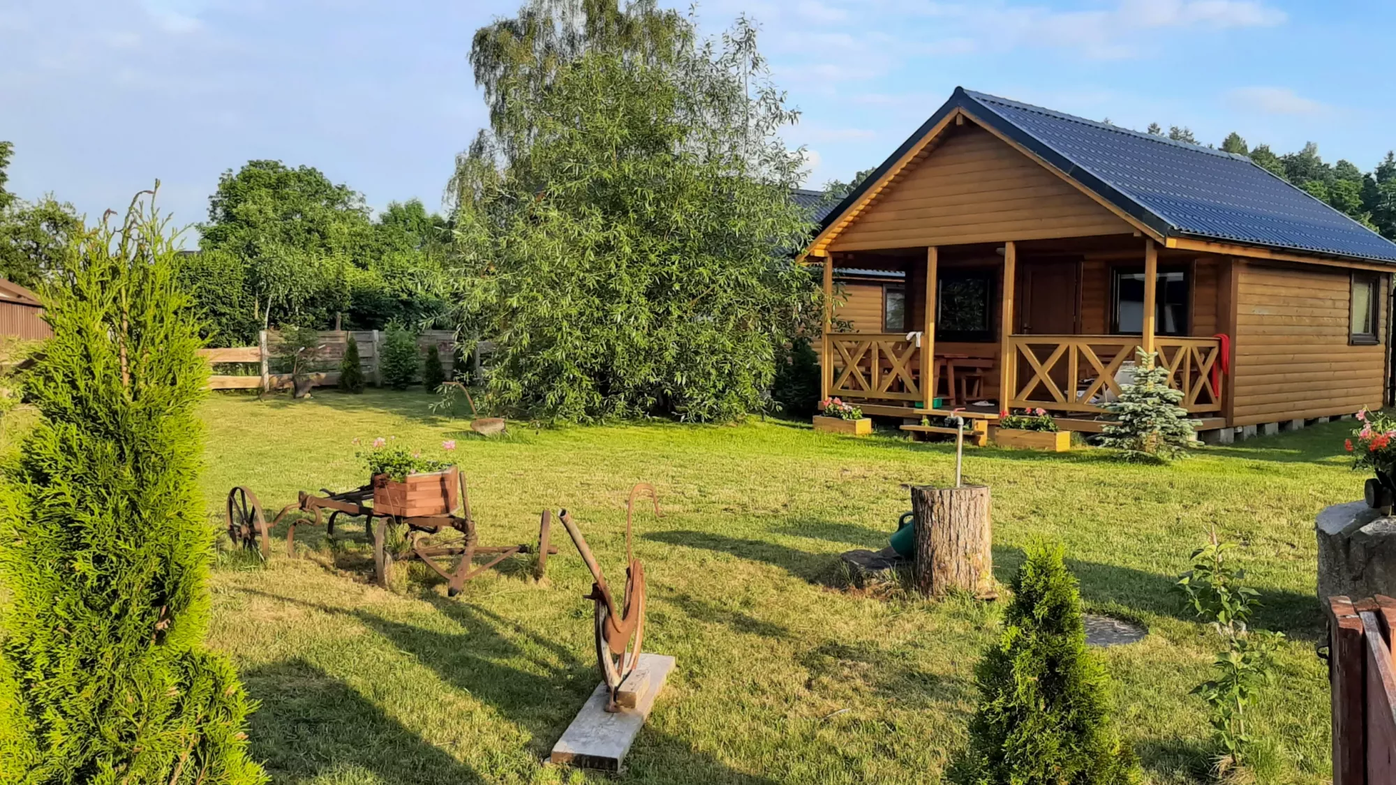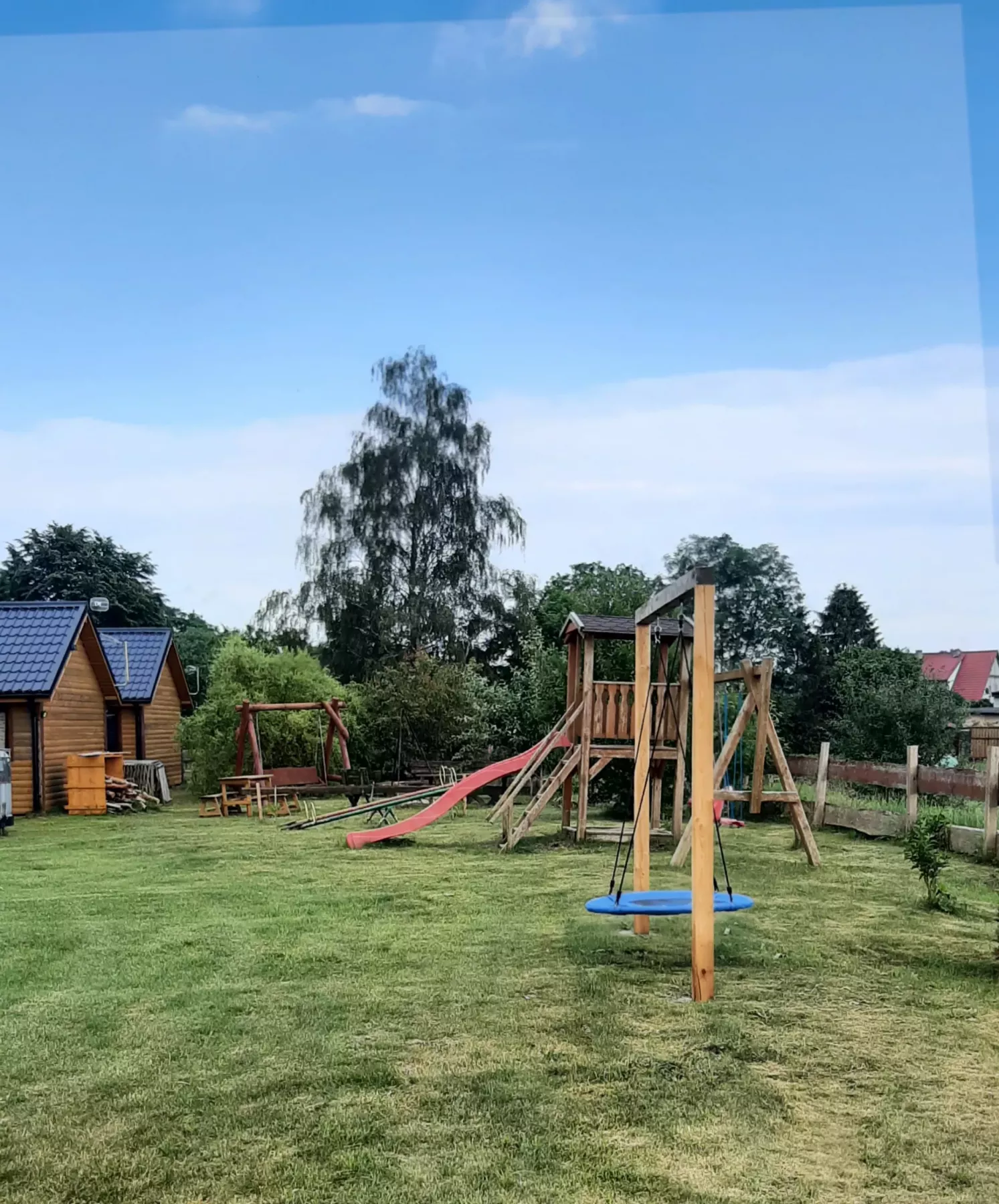 Komfortowe domki drewniane na zielonym ogrodzonym terenie